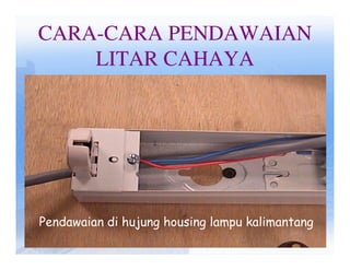Pendawaian dimulakan dengan menjalankan wayar untuk lampu dari hujung ke hujung lampu. The 3 pin plug cara pemasangan lampu pendaflour. Cara menukar Lampu Pendaflour ke LEDhttpsyoutubep-fbxqiVlhoPendawaian Elektrik.
